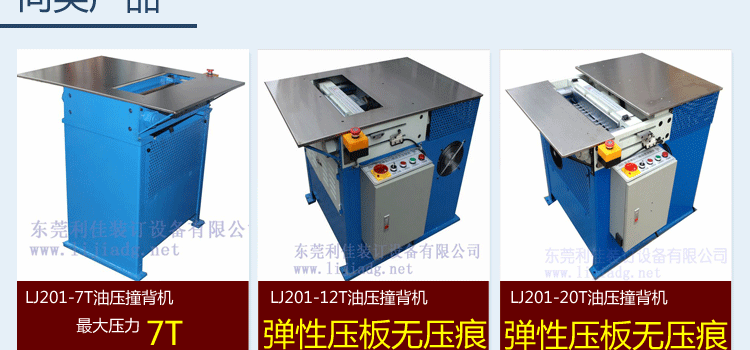 6. 本司可根据不同客户要求设计生产出多种压力的油压撞背机。有7吨,12吨,20吨,30吨等机型;正常情况下12吨撞背机已能满足书籍压背需求。